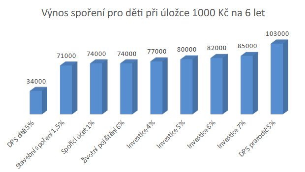 Závěrečná tabulka jasně ukazuje, pro jaký horizont zvolit který nástroj. Na spoření v délce 6 let se nejvíce vyplatí Doplňkové penzijní spoření na prarodiče. Stejné řešení je vlastně nejlepší ve všech případech, ale přeci jenom se zvyšuje riziko, že se nepovede spořit celou dobu. Proto na delší horizonty lze raději doporučit přímou investici do podílových fondů. Stavební spoření se může stát doplňkem portfolia nebo se takové úspory uplatní jiným způsobem v domácím rozpočtu (např. se použijí na nákup nového auta nebo na rekonstrukci koupelny). Pokud bychom chtěli mít DPS na dítě a měl by být zachován státní příspěvek a všechny benefity, znamenalo by to v praxi pro dosažení požadovaného výsledku spořit trojnásobek uvedené částky (dítě si může vybrat pouze 1/3 svých úspor).