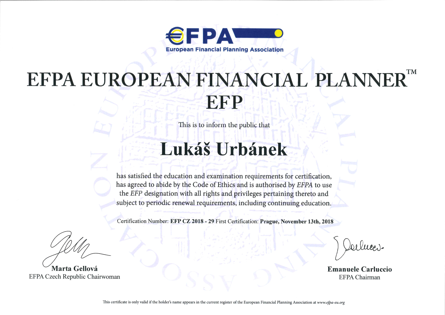 Ing. Lukáš Urbánek, EFP, finanční poradce společnosti Partners. V roce 2011 se stal jedním z prvních držitelů mezinárodního certifikátu EFA (European Financial Advisor) v rámci ČR a od listopadu 2018 patří mezi prvních 18 poradců, kterým se podařilo získat navazující certifikát EFP (European Financial Planner), který aktuálně patří mezi nejprestižnější vzdělání v oboru finančního poradenství. Spoluautor knihy Jak ovládnout své finance – Finanční plánování pro každého. Jako finanční poradce se často objevuje v předních českých médiích.